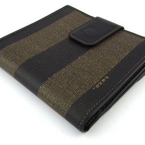 Authentic FENDI W hook purse pecan beige PVC ~ leather Auth used