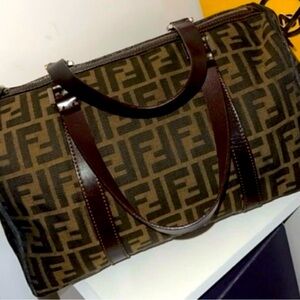 Authentic FENDI Zucca FF pattern Mini Duffle Bag Hand Bag Canvas/Leather🤎🤎EUC🤎