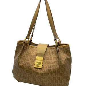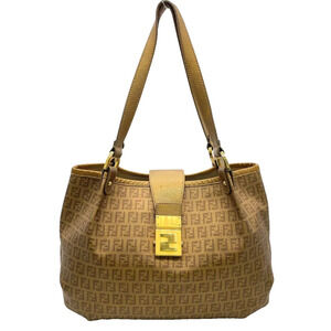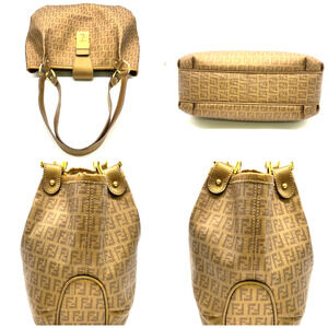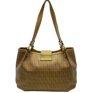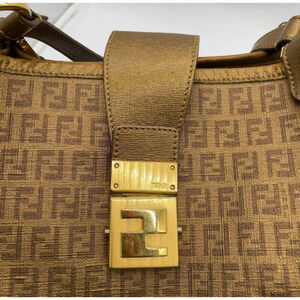 Authentic FENDI Zucchino Gold Calf Leather Flap Lock Shoulder Bag Purse