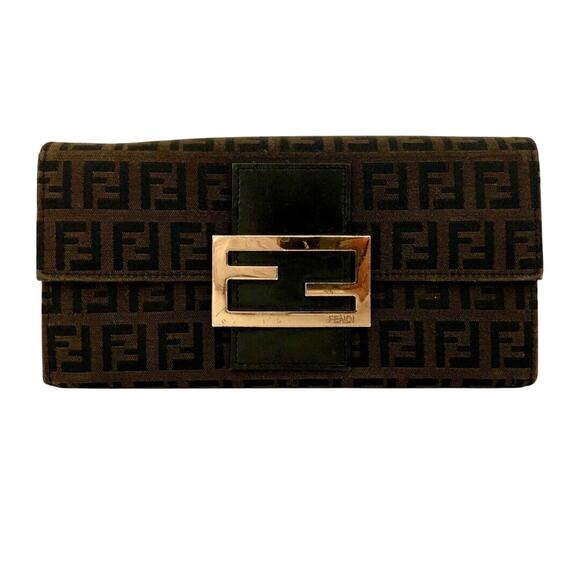 FENDI Zuccino Canvas Leather Long Bifold Wallet