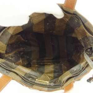 Authentic FENDI tote bag block check beige PVC �~ leather used Auth