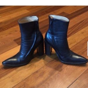 Amazing FREELANCE Paris ankle boots with curved zip in Black size 36.5 or US 6.5. These are the high heel (4 inch) version of the Alma boot and a very, very rare and hard to find. These are in excellent condition.