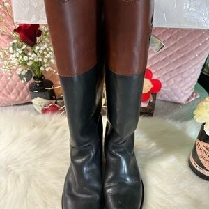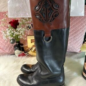 Authentic FRYE MELISSA TWO TONED BLACK AND COGNAC KNEE BOOTS 5.5B