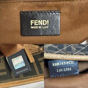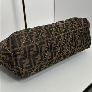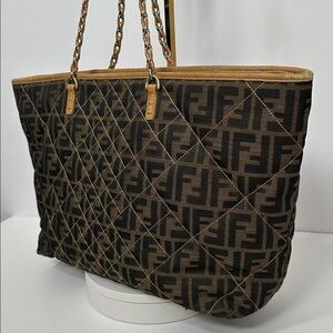 Elegant Fendi bag with classic Zucca design. Rich brown and tan hues.