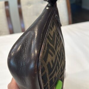 This Fendi crossbody bag showcases the iconic FF monogram in a sophisticated brown and black color scheme. Crafted with a structured design, it features a sleek black leather trim and strap, embodying the brand's signature elegance. Perfect for adding a touch of luxury to any ensemble. It has some scratches on leather and canvas and strap is a bit worn but not torn. The inside leather lining is also worn but still has life left. PRICE IS FIRM!!!