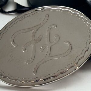 Authentic Fendi men’s belt size 100 (40) black leather with a large oval silver buckle. It is brand new with tags , box and dust bag! Great for Xmas present. Brand new with tags, no flaws.