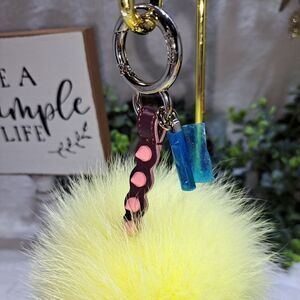 NWT Authentic Fendi Fox Hair Pon Pon in Yellow
