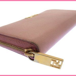 Authentic Fendi Wallet Purse Long Wallet Logo Pink Gold Woman