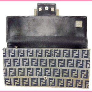 Authentic Fendi Wallet Purse Long Wallet Zucchino Navy Beige Woman Authentic