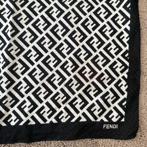 Authentic Fendi Women’s Black And White FF Monogram Cotton Scarf Handkerchief