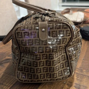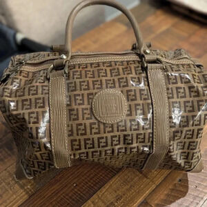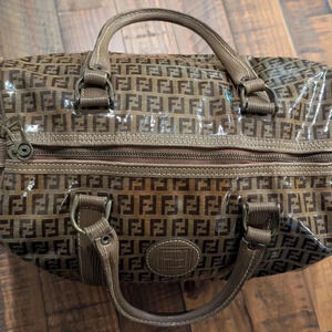 This Fendi Zucca Boston Bag is the epitome of classic Fendi style, featuring the iconic "FF" logo pattern in brown PVC-coated canvas. A timeless piece perfect for travel or daily use.