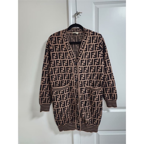 Authentic Fendi Zucca Cardigan in Brown/Black
