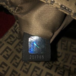Inside pocket with zipper—perfect working order! Hardware is embossed with “Fendi”.