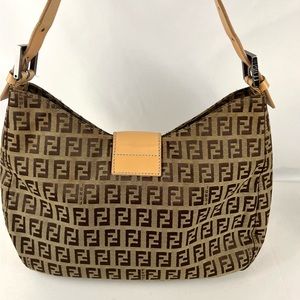 Authentic Fendi Zucchino Hobo Croissant Shoulder Bag