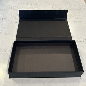 No rips. Small white stains. Magnetic closure. Measures 9 x 5 x 1 1/2”. Great for wallets.