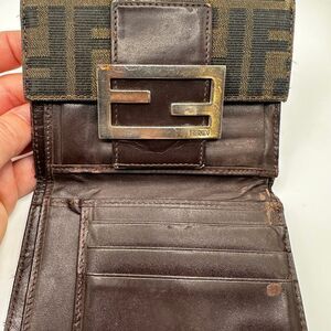 This is an authentic Fendi wallet! It's been loved. Still very functional but yes, there are signs of wear, so please review the pictures carefully.