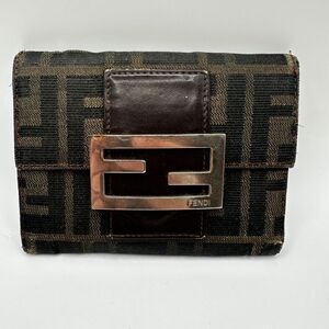 Authentic Fendi Zucca Trifold Wallet Canvas Calf Leather - *See Notes*