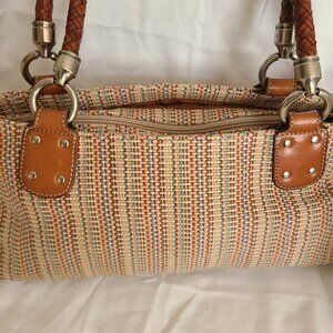 Authentic Fossil 1954 Multi Color Stripe Woven Satchel Handbag Shoulder Bag Tote