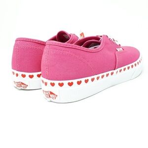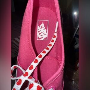 Brand new pink canvas vans with white trim w red hearts and white / red heart laces