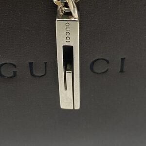 Add a touch of iconic elegance to your collection with this authentic Gucci pendant necklace, crafted from 925 sterling silver. The delicate “G” logo charm is a timeless symbol of luxury and style.