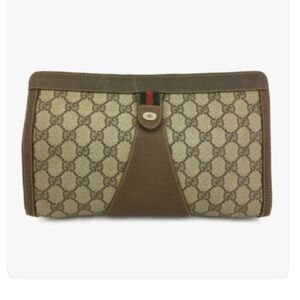 Authentic GUCCI Beige GG Logo Vintage Canvas Webbing Clutch