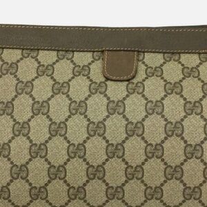 GUCCI Beige GG Logo Vintage Canvas Clutch with Webbing Detail