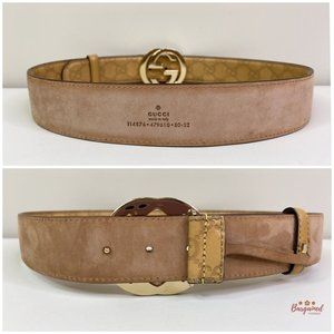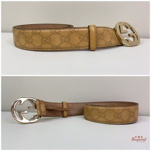 Authentic GUCCI Beige Guccissima Leather Interlocking G Gold Buckle Belt 80/32