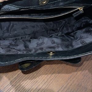 Authentic GUCCI Black Dialux Leather Queen Bow PVC Hobo Shoulder Bag