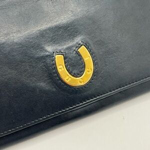 Authentic GUCCI Black Leather Long Wallet with Gold Accent Horseshoe