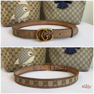 Authentic GUCCI Brown Monogram Canvas Gold double G Buckle Belt 85/34