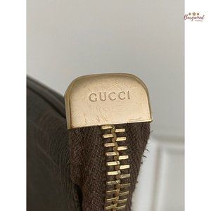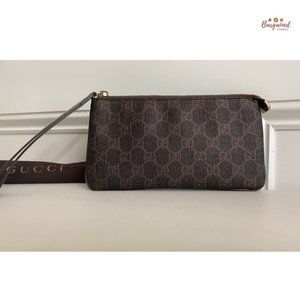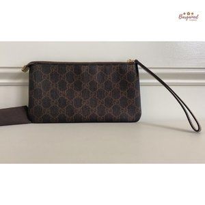 Authentic GUCCI Brown/Bronze GG Coated Canvas Wristlet Pochette Clutch Bag
