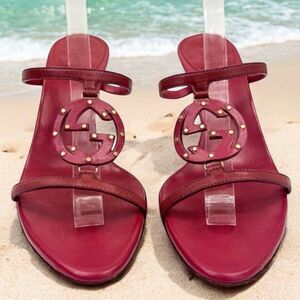 Authentic GUCCI Burgundy Interlocking GG Logo Mules Size 7.5
