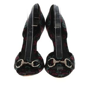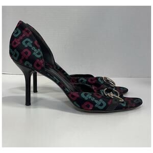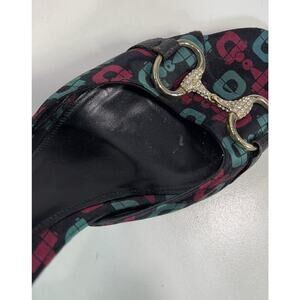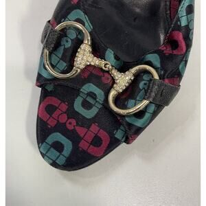 Authentic GUCCI Canvas D'orsay Horsebit Lizard Swarovski Crystal Pumps Heels 9.5