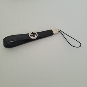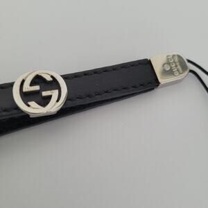 Authentic GUCCI Cell Phone Key Charm Strap Lanyard Leather Black Leather New