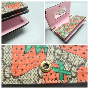 Authentic GUCCI Chain Wallet Brown Strawberry Canvas Shoulder Bag 778-121424