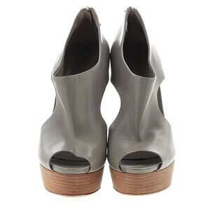 Authentic GUCCI Clemence Gray Leather Peep Toe Wedge Cut Out Heel Size EU 39/9
