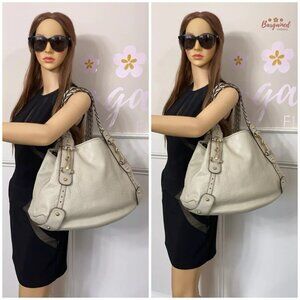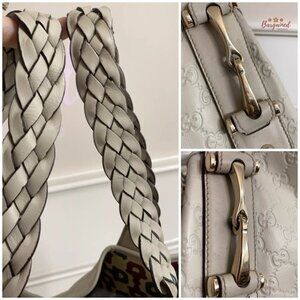 Authentic GUCCI Cream Guccissima Monogram Leather Pelham Large Shoulder Bag