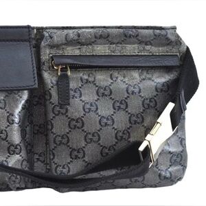 Authentic GUCCI GG Crystal Waist Body Bag Purse GG PVC Leather Black