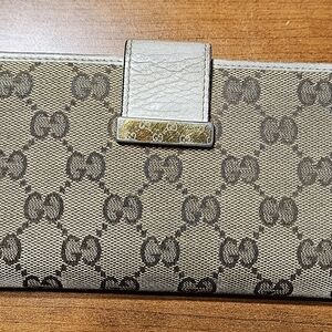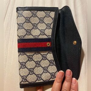 GUCCI Trifold Wallet, Snap Double Coin Purse, Bill Fold, 7 Credit Card Slots, Canvas And Leather Materials