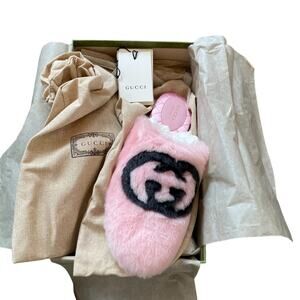 100% Authentic Gucci Interlocking GG Faux-Fur Slippers