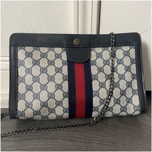 Authentic GUCCI Navy Web Sherry Line GG Plus Shoulder Crossbody Bag