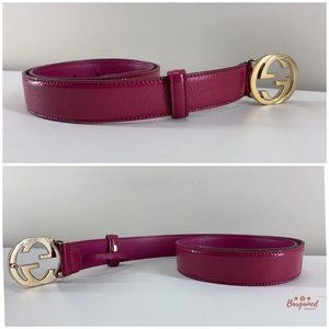Authentic GUCCI Pink Rose Coated Calfskin Leather GG Interlocking Belt 75/30
