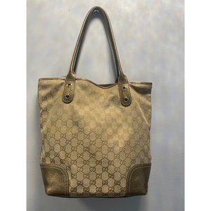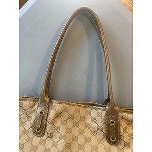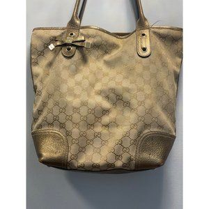 Authentic GUCCI Princy Shoulder Tote Bag GG Canvas Leather 181779 Beige K0517