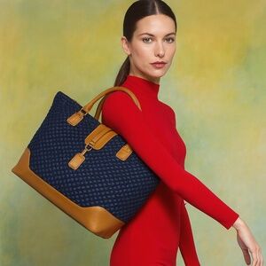 Chic coastal-cool meets Italian craftsmanship. Natural raffia with smooth blue leather trim + gold-tone hardware. Spacious & versatile — from beach to city.