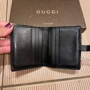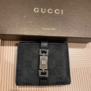 Authentic GUCCI wallet made of canvas. Timeless and classic! Horsebit style with silver hardware. Excellent preowned condition with light signs of wear like rubbing to corners. No box included.