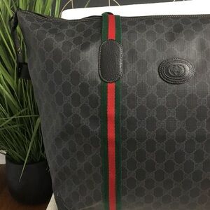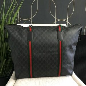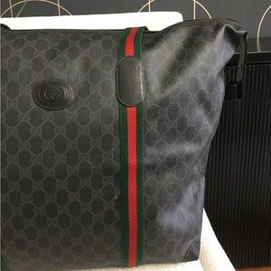 Authentic GUCCI unisex travel bag black monogram coated canvas
