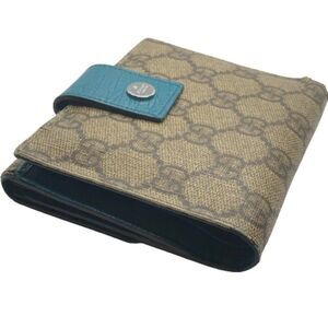 Authentic GUCCI Brown Coated Canvas & Teal Leather Designer Wallet