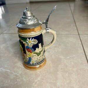 Authentic Vintage Ceramic German Oktoberfest Beer Stein by Gerzit with handle and Metal Flip-top Lid. Measures ~7.25" Tall (with lid) [5.25" without] x 4.5" Wide (from handle) x 2.25" Diameter. Was only used for display, no visible flaws or defects. Always willing to bundle - send a message!