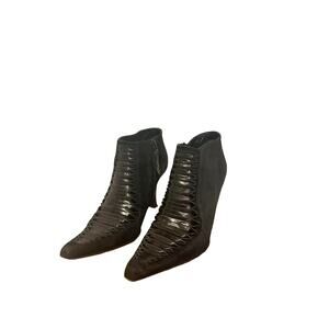 Authentic Giuseppe Zanotti Designer Heel Boots Woven Leather Suede Sz 38 US 7.5