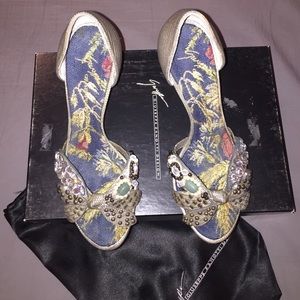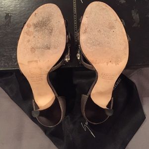 Authentic Giuseppe Zanotti heels, grey shimmer leather, Swarovski crystals, metal and beading detail, great condition, comes with original box and dust bag